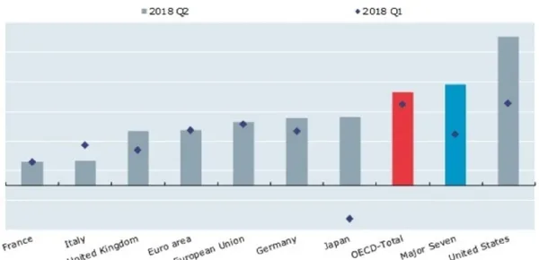 La verità sull'economia italiana, la danno come sempre i numeri. Significativi quelli Ocse che due giorni fa ha pubblicato i dati relativi al secondo trimestre dell'anno: ebbene la crescita rallenta, passando da un+ 0.3% del primo trimestre al +0.2% del secondo, ovvero la metà della crescita dell'area Euro il che fa dell'Italia l'unico paese in flessione tra quelli del G7. La Germania per capirci ha messo a segno un+0.5%, in crescita rispetto al primo trimestre dell'annom Tale dato è affiancato da un calo della fiducia delle imprese e dei consumatori italiani.