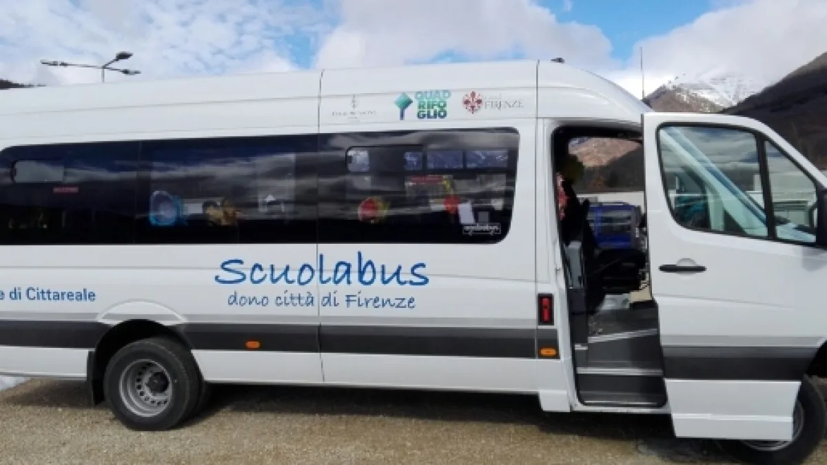 Uno scuolabus di 32 posti per Montereale, in provincia di Rieti, una delle città colpite dal terribile terremoto del 24 agosto. Il mezzo è stato consegnato al primo cittadino del centro reatino Francesco Nelli dal Sindaco di Firenze Dario Nardella.