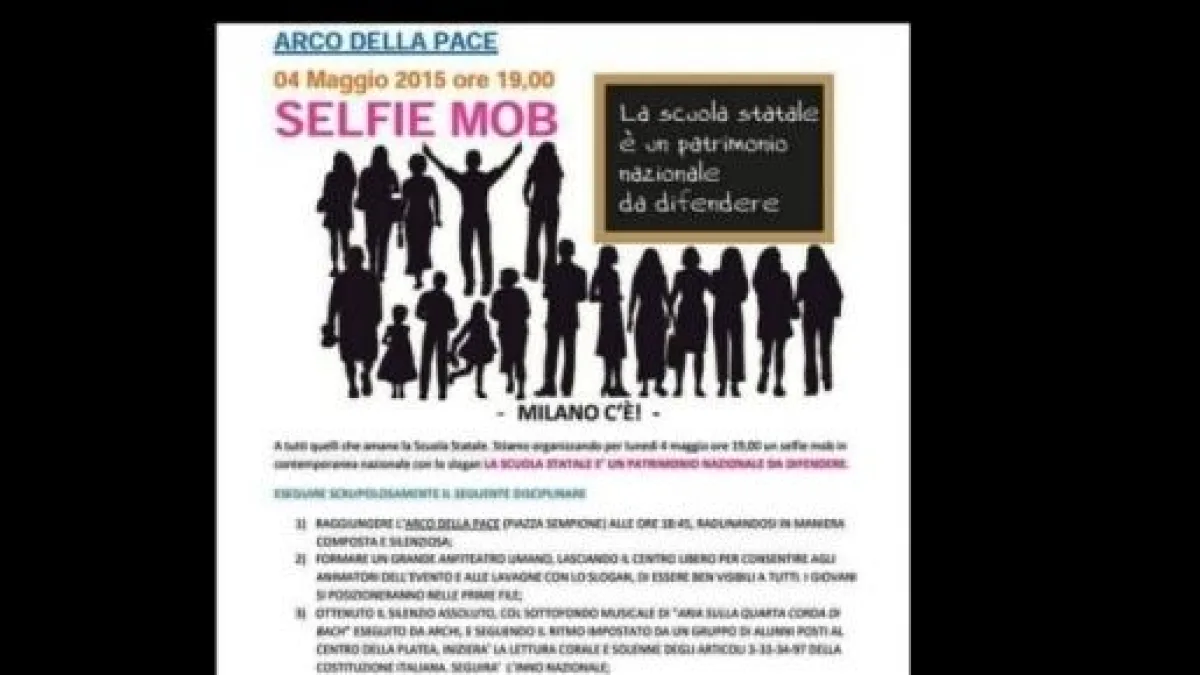 In attesa dello sciopero generale contro la Buona scuola del Premier Renzi del 5 maggio 2015, la scuola si mobilita con iniziative, flash mob e 'selfie mob': manifestazioni pacifiche e artistiche che raccoglieranno la presenza di docenti, studenti e genitori che, tutti insieme, esprimeranno il dissenso al contenuto del disegno di legge in approvazione al Parlamento.