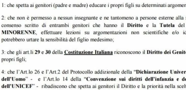 Gianmario Pala e Mariella Vallesi, amministratori del gruppo operante su Facebook denominato 'Docenti e famiglie contro gender e ddl scuola', hanno moltiplicato i loro sforzi affinchè venga diffusa questa lettera in cui si invitano tutte le famiglie italiane a non firmare il patto di corresponsabilità educativo e a prestare attenzione che nel P.O.F. (Piano di Offerta Formativa) non siano state incluse espressioni come educazione di genere o sessuale (usate al posto del termine 'gender') o educazione al rispetto delle diversità.