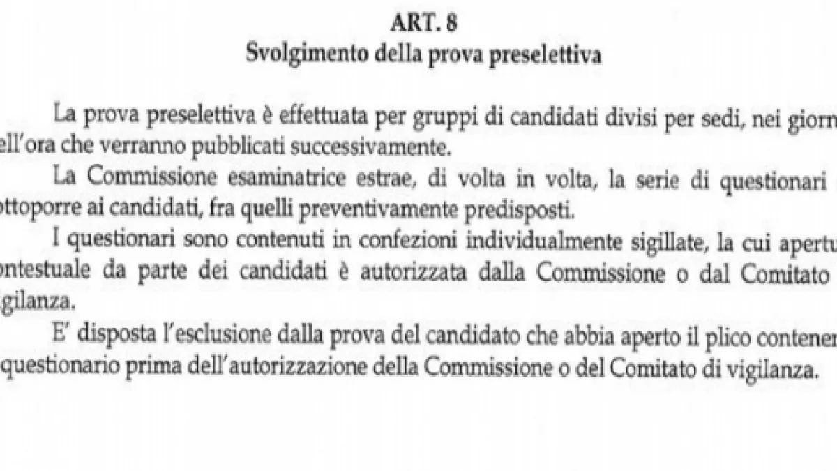Sempre durante la prova preselettiva sarà fatto divieto ai candidati di interagire con altri colleghi. Qualora si venisse sorpresi a parlare con altre persone che stanno partecipando alla prova, l'esclusione dal concorso sarà automatica.