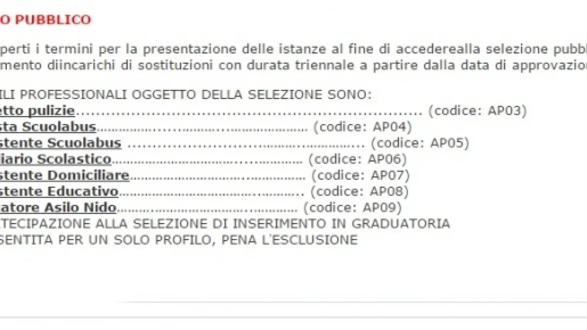 Inoltre, nel bando si specifica che bisogna aver maturato esperienza documentabile per la posizione a cui si concorre.