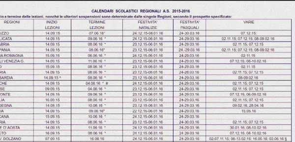 Calendario fine scuola 2015/16 per regione