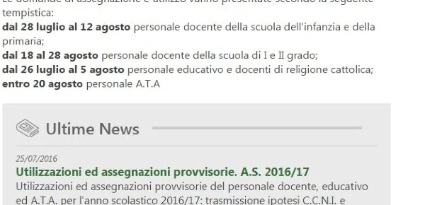 I trasferimenti saranno pubblicati nel sito dell'Ambito Territoriale Provinciale competente, ma potrete conoscere in anticipo l'ambito o la scuola d'assegnazione tramite Istanze online. Come fare? Vi basterà entrare su Istanze online e, una volta entrati sulla voce "Altri Servizi", troverete la voce "Consultazione Domande Nuova Mobilità 2016", una volta aperta tale voce sarete informati dell'esito della vostra domanda di mobilità. Infine, vorremmo ricordare ai docenti dell'infanzia e della primaria, che i tempi per presentare domande di utilizzazione e di assegnazione provvisoria, sono dal 28 luglio al 12 agosto, mentre per gli altri docenti, le suddette domande potranno, invece, essere presentate dal 18 al 28 agosto personale docente della scuola di I e II grado; e 25 luglio al 5 agosto personale educativo e docenti di religione cattolica.