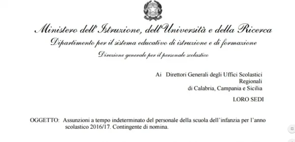 In via di emanazione un decreto integrativo Miur per la disposizione di circa 237 cattedre in più per avviare le immissioni in ruolo nella scuola dell'infanzia per l'a.s. 2016/2017. Il provvedimento del Ministero non interessa tutte le province ma le regioni Calabria, Campania e Sicilia.
