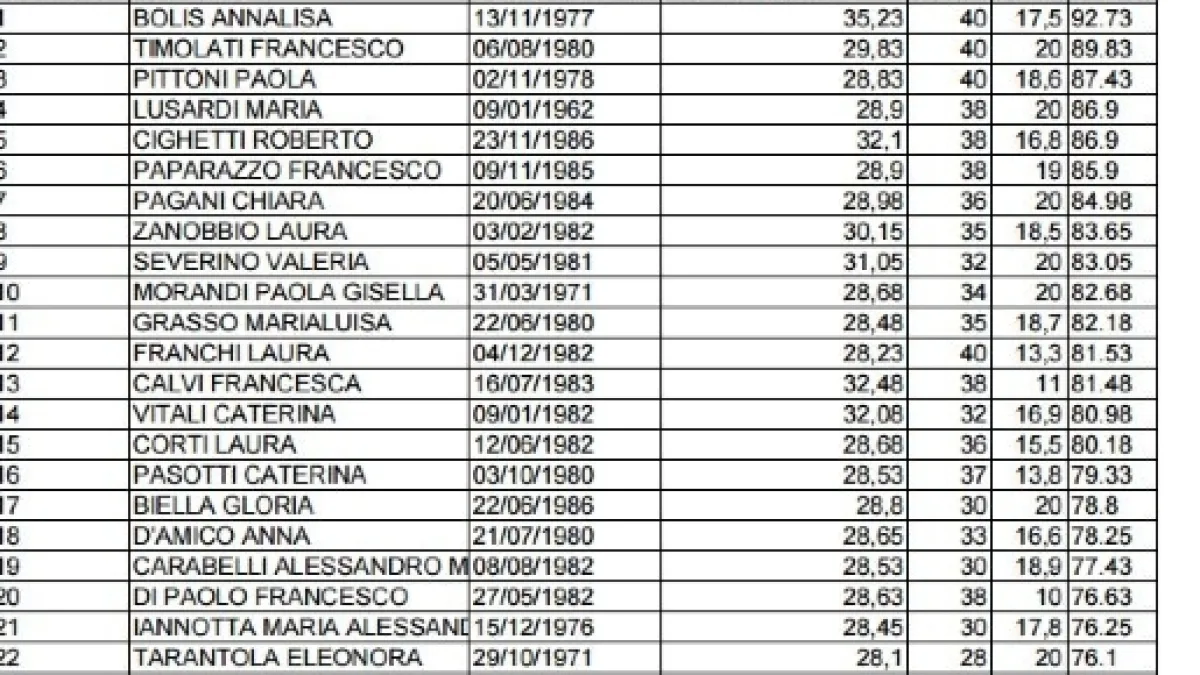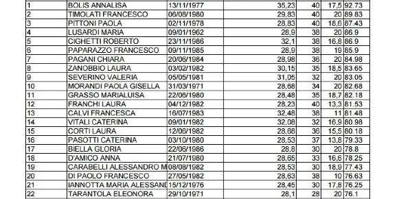I primi aggiornamenti di cui vi rendiamo conto, riguardano l'Usr Lombardia che ha pubblicato le GM riferite alle seguenti cdc: A46 scienze giuridico-economiche; B26 Laboratorio di Tecnologie del legno per la regione Calabria e Marche; B23 Laboratori per i servizi socio-sanitari (GM disponibili anche per le regioni Veneto ed Emilia); A50 Scienze Naturali, chimiche e biologiche: in questo caso gli ammessi in graduatoria sono pari a 46, la prima candidata in classifica risulta essere Bolis Annalisa, con una votazione di 92,73 punti.
