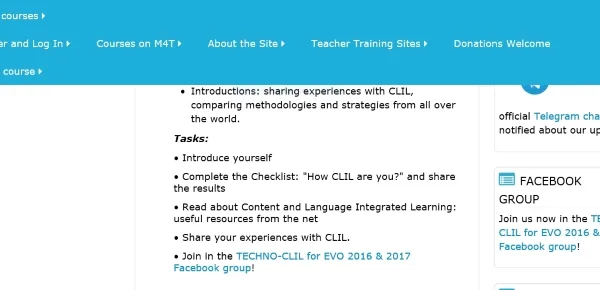 - dovrete iscrivervi al gruppo Facebook dal titolo "tecno-CLIL PER EVO 2016 & 2017".