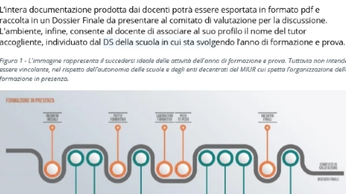 Tutte le attività svolte da docenti su Indire andrà a costituire il portfolio professionale, che al termine delle attività sarà esportato in formato pdf e raccolto in un Dossier Finale da presentare al comitato di valutazione per la discussione. Un documento conclusivo che risulterà di particolare importanza sarà il bilancio delle competenze finali, il quale consentirà al docente di riflettere su quanto esperito a scuola durante l’anno di prova, compresi i momenti di formazione in presenza.