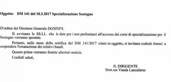 Nello sgomento generale, continua ad aggravarsi la situazione transitoria della scuola italiana, tra un terzo ciclo del TFA ancora da programmare, un futuro ignoto per gli aspiranti docenti, l'ultima beffa è il rinvio del TFA per gli insegnanti di sostegno. Con una nota ufficiale, il 17 marzo 2017, il MIUR ha comunicato il rinvio dei test preliminari, a data da destinarsi.