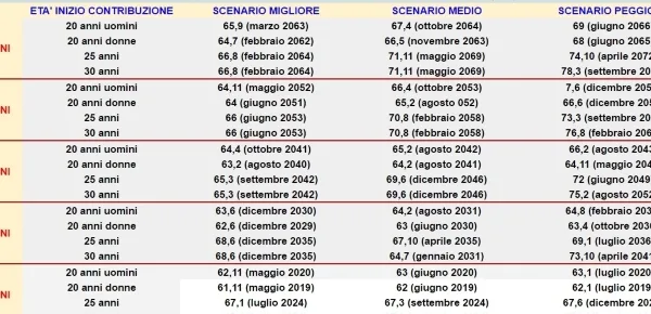 E, in tutti gli scenari, occorre considerare l'età nella quale il contribuente ha iniziato a lavorare: l'aver cominciato a 20 anni è differente dai 25 o dai 30.