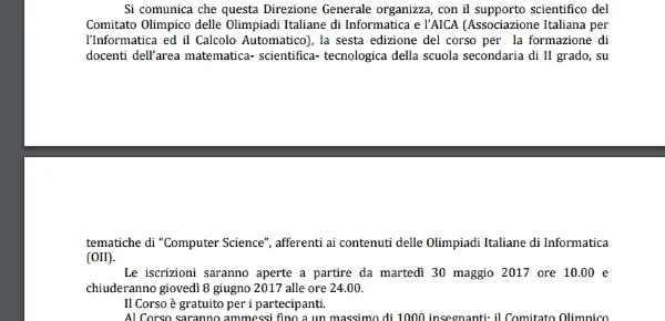 Il corso si baserà su competenze di problem solving che mireranno a potenziare le proprie competenze digitali da utilizzare nella didattica disciplinare in aula. La durata del corso prevede 25 ore di formazione in presenza, sarà erogato su una piattaforma e-learning e sarà tenuto da docenti universitari. Chi può fare iscrizione al corso? In linea generale, possono partecipare al corso tutti gli insegnanti della scuola secondaria di secondo grado che insegnano materie matematico-scientifico e tecnologiche. Gli interessati dovranno effettuare iscrizione online mediante la compilazione del modulo reperibile al seguente link https://docs.google.com/forms/d/1jtqBx3OlAVXoWkhJGmYDyHwVSwvBpTpMb7FzcvFkmvQ/closedform