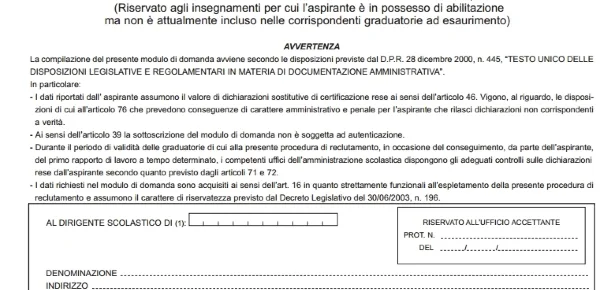 Ed infine, dovranno presentare il modello A2 bis i soggetti non abilitati già presenti nelle graduatorie del triennio scolastico 2014/2015, 2015/2016, 2016/2017 e contemporaneamente per nuovi insegnamenti). I su elencati modelli potranno essere stampati dal sito del Miur alla sezione riferita alle graduatorie d'istituto, una volta compilato in ogni loro parte potranno essere consegnati o manualmente presso la segreteria prescelta o inviati tramite raccomandata o pec.