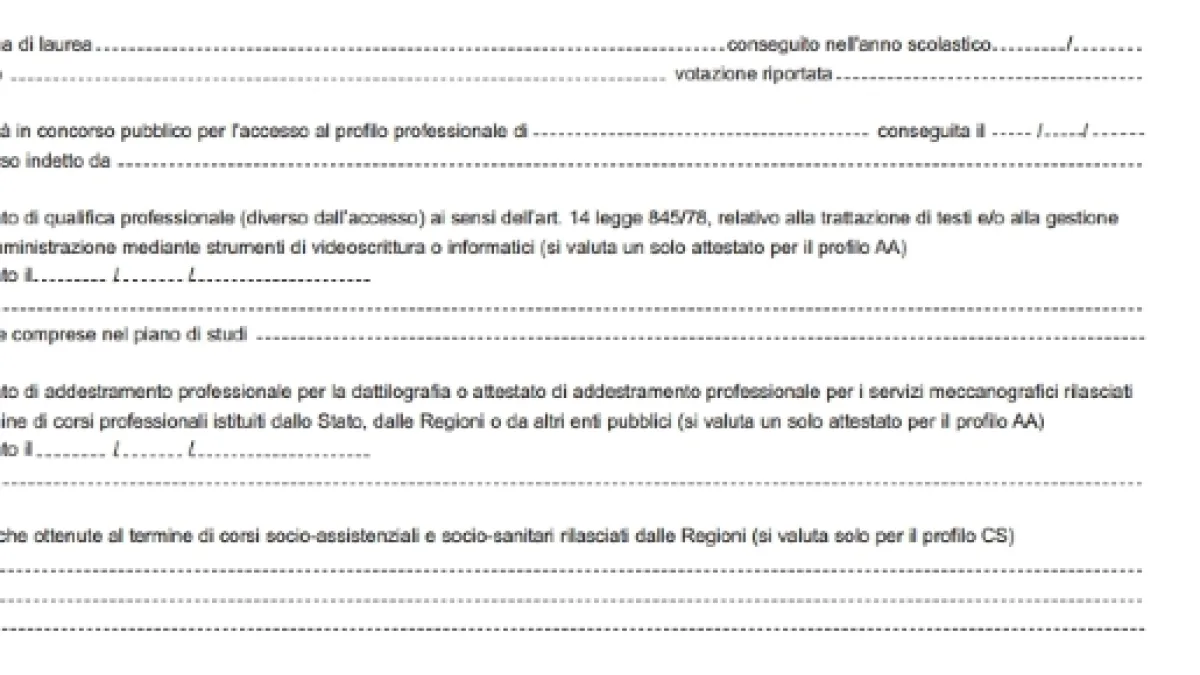 - qualifiche ottenute al termine di corsi socio-assistenziali e socio sanitari, anche se tali corsi si valutano solo per la mansione/profilo di collaboratore scolastico).