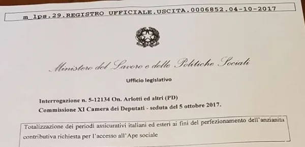 "Accesso all'Ape sociale anche per chi ha versato una parte dei contributi all'estero": lo domanda l'On. Davide Baruffi commentando un'interrogazione parlamentare sulla totalizzazione dei periodi assicurativi italiani ed esteri ai fini del perfezionamento dell'anzianità contributiva richiesta per la misura. Il Parlamentare ha quindi spiegato che si tratta di "una questione dirimente per i lavoratori transfrontalieri (ma non solo)" perché "a fronte della prima chiusura di Inps e Governo stiamo faticosamente conquistando una riconsiderazione del problema, per garantire parità di condizioni (e quindi un sacrosanto diritto) per questi lavoratori".