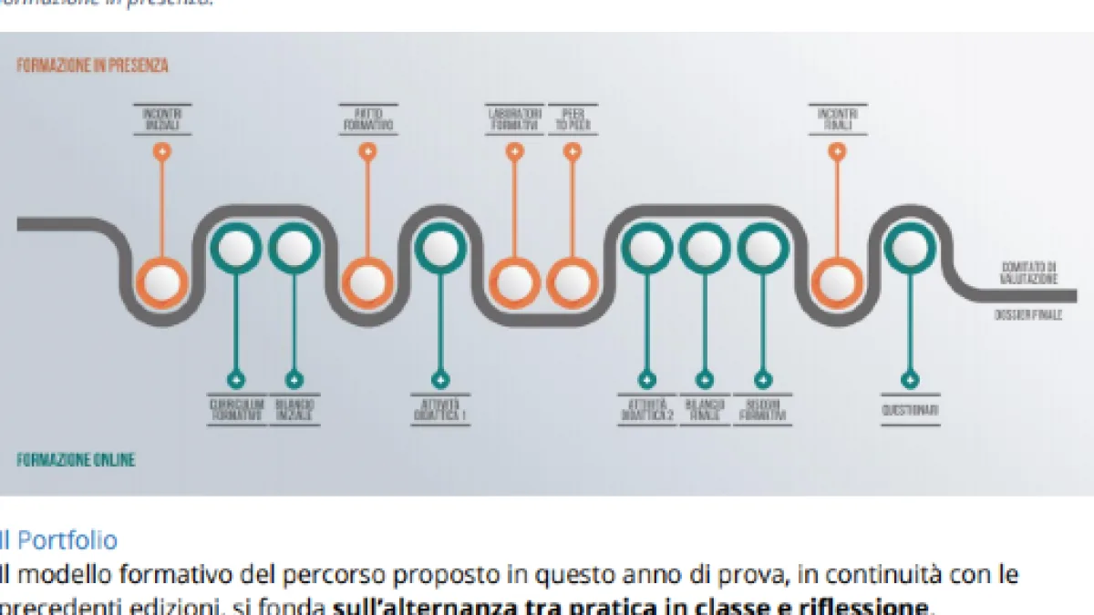 Il modello formativo del percorso proposto per i docenti che dovranno affrontare l'anno di prova e formazione è basato sull’alternanza tra pratica in classe e riflessione nell'ambiente dedicato di Indire. Pertanto, l'anno di prova dovrà essere un'alternarsi di formazione offline, ovvero in presenza (incontro di accoglienza, l'osservazione reciproca, laboratori formativi e incontro di restituzione finale) ed una formazione online, per l'appunto nell'ambiente dedicato neoassunti.indire.it (il quale sarà aperto il prossimo lunedì 20 novembre 2017, per l'accesso occorre registrarvi).