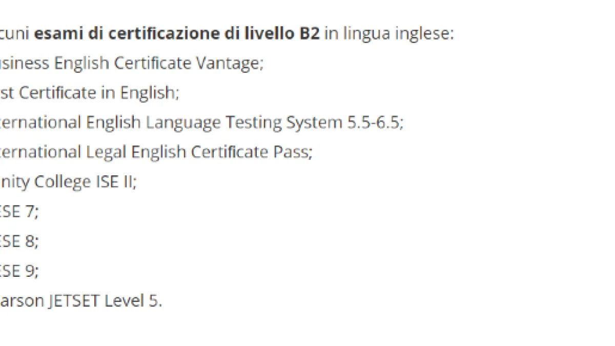 Esami di certificazione livello B2 inglese