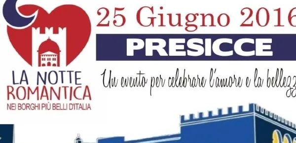Una serata dedicata all’amore, all’arte e alla scoperta delle bellezze del territorio. Con questo spirito nasce la prima edizione de ‘La Notte Romantica’, iniziativa voluta dall’Associazione dei Borghi Autentici d’Italia, in programma sabato 25 Giugno, con il coinvolgimento contemporaneo di 178 Comuni in tutta la Penisola. Unico luogo del Salento sarà la cittadina di Presicce, e il suo pregevole centro storico dall’inestimabile valore artistico e culturale.