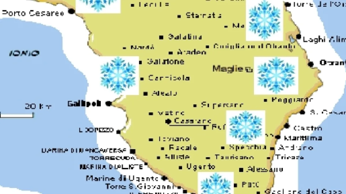 Arriva il freddo sulla provincia di Lecce. L'inverno sta per cominciare ed il freddo inizia a farsi sentire. Durante il giorno, le temperature massime sono in realtà abbastanza alte, o comunque in media con il periodo, ma sono le minime ad essere molto basse, ben al di sotto delle medie stagionali. Infatti, le temperature medie sul Salento a Dicembre prevedono le minime attorno ai 6°C e le massime attorno ai 14°C, invece in questa settimana le minime saranno attorno ad 1-2 gradi, con picchi di freddo in cui si toccheranno anche gli 0 gradi e le massime non supereranno i 12 gradi.
