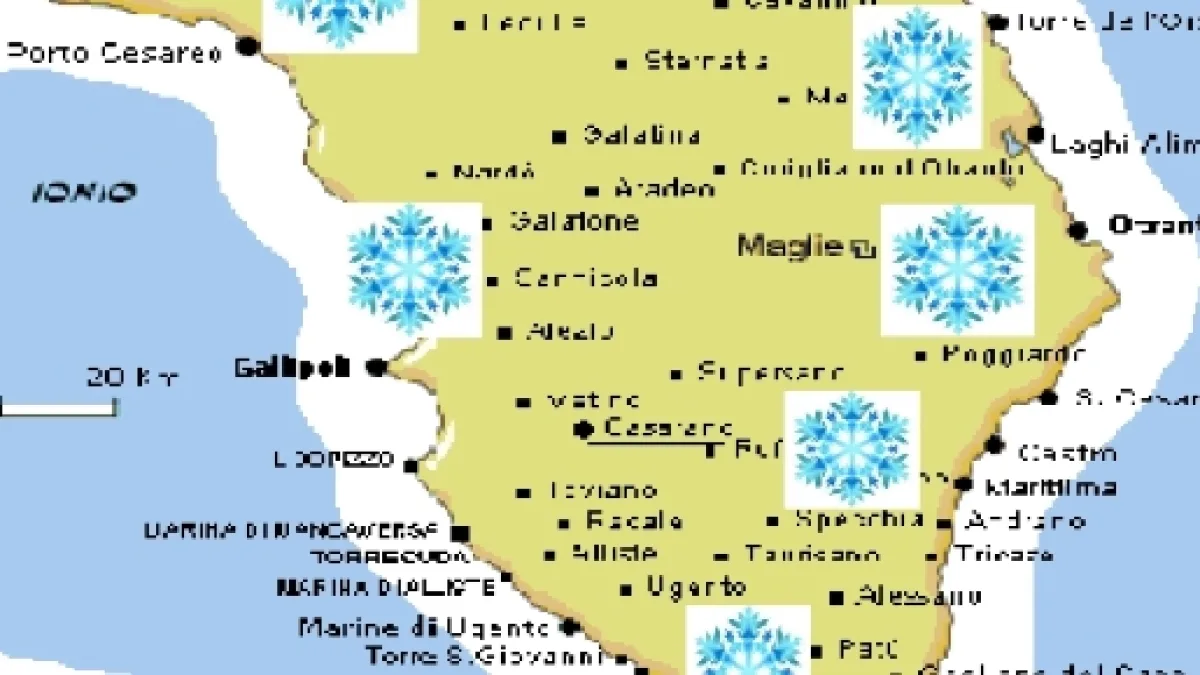 La neve è prevista, infatti in varie zone e potrebbero registrarsi nevicate copiose in varie cittadine salentine: Trepuzzi, Surbo, Copertino, San Pietro Vernotico, Cellino San Marco, Cisternino. Potrebbe nevicare anche sulle coste: infatti, tra venerdì e sabato sono previste nevicate modeste sia a Otranto che a Gallipoli. Insomma, un clima gelido sul Salento che non si verificava da tempo e che durerà per tutto il corso del prossimo week end. Le città più fredde della Puglia saranno Alberobello, Martina Franca e Cisternino che tra Venerdì e Sabato raggiungeranno i -5 gradi centigradi.