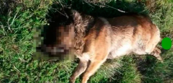 L'uomo avvicinandosi al corpo dell'animale ha subito intuito che lo stesso fosse stato orribilmente seviziato: il pastore tedesco aveva la coda spezzata e aveva il muso fasciato da uno straccio nero, oltre ad altri segni di percosse. Ciò che non si sa è se le sevizie siano state inflitte prima della morte oppure solo a decesso avvenuto come in una specie di macabro rituale.