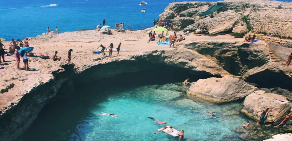 Sicuramente è uno dei posti più spettacolari del nostro Paese. Una grotta naturale, definita tra le più belle al mondo: questa è la Grotta della Poesia, che si trova a Roca Vecchia, vicino Melendugno, sulla costa adriatica leccese. Ogni anno migliaia di turisti si recano qui per visitare questo spettacolo unico, ma anche, e soprattutto, per poter fare dei tuffi mozzafiato nell'acqua cristallina dalla cima della scogliera.