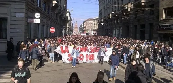 Espressioni forti e decisi, per fare presa su chi era lì intorno, per arrivare più facilmente all’obiettivo principale: il governo. Il sottotitolo non lascia dubbi: “No all’alternanza scuola lavoro! No jobs act! Io non ci sto!!”. Chi lo ha scritto, chi protesta, chi urla la propria presa di posizione decisa e implacabile, sono studenti e studentesse, per lo più milanesi, ma che portano alla ribalta situazioni e progetti di cui sono protagonisti (o, nella loro visione, vittime) gli studenti di tutto lo stivale.