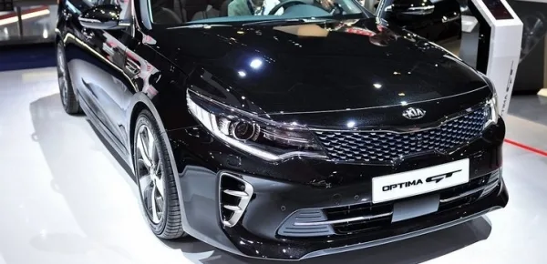 La lunghezza della Optima è considerevole, ma questo a vantaggio del bagagliaio (con una capienza minore per la versione ibrida a causa del pacco batterie presente all'intero di esso) e dei passeggeri. La versione nell'immagine è la GT, quindi una versione più aggressiva. I fari anteriori si sviluppano orizzontalmente e sono congiunti mediante la griglia tipica delle vetture Kia. Il paraurti anteriore è molto ravvicinato al suolo per ridurre al minimo i consumi nei tratti ad alta velocità. Posteriormente si ha una coda lunga e con forme morbide.