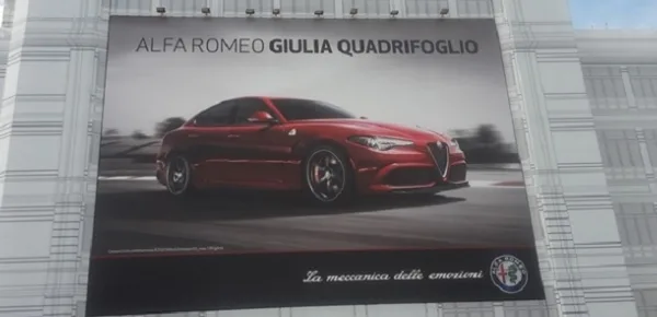 Proprio per incentivare ulteriormente le vendite, per i prossimi mesi di giugno e luglio i vertici di Fiat Chrysler Automobiles hanno deciso di organizzare una campagna di comunicazione dal forte impatto visivo. Questa tra le altre cose prevede l'affissione di due mega manifesti di Alfa Romeo Giulia nello storico palazzo del Lingotto di Torino. Questi mega poster in totale misureranno: uno oltre 371 metri quadri e l'altra di 313 mq. In questo modo lo storico edificio ha inteso omaggiare la nuova vettura, che rappresenta una sorta di nuovo inizio per il Biscione, che però si congiunge, in questa maniera, al suo storico passato.