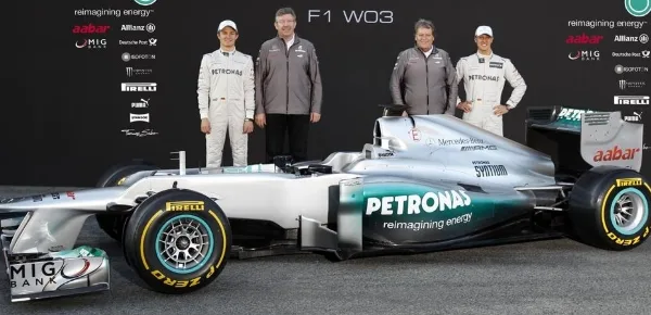 Insieme al team principal, Toto Wolff, i due piloti hanno svelato le nuove caratteristiche della vettura che a differenza delle già presentate Renault, Force India e Sauber, spicca per l'assenza dell'ampia pinna sul cofano motore.