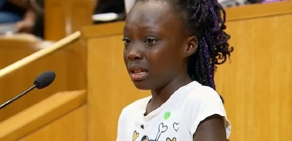 Il colore della nostra pelle non vuol dire nulla per me. Siamo neri e non dovremmo vergognarci per questo" ha detto in lacrime la ragazzina. "È una vergogna che i nostri papà e le nostre mamme vengano uccisi, non possiamo più sopportarlo. È una vergogna doverli seppellire e andare a trovare al cimitero. Abbiamo lacrime che non dovremmo avere. Abbiamo bisogno che i nostri papà e le nostre mamme siano con noi, al nostro fianco" ha continuato.