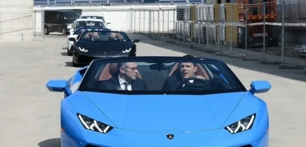 La Lamborghini, storica nemica della cavallino, soprattutto nel ricco mercato delle supercar, non è voluta esser da meno e ha messo in mano del presidente una Huracan Spyder, bolide da oltre 500 cavalli, che il primo ministro ha guidato con disinvoltura sulla via Emilia. Rimanendo in zona, sarebbe stato interessante vederlo anche alle prese con una Ducati, azienda che ha visitano negli ultimi giorni del road-show referendario, ma evidentemente in difficoltà e reperire l'abbigliamento tecnico e i tempi ristretti hanno cancellato dal protocollo istituzionale questa opportunità.