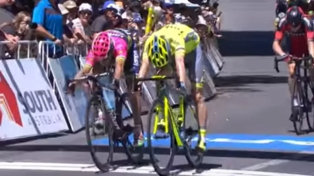 Diego Ulissi gli è uscito da ruota, ma dopo un lungo testa a testa non è riuscito a completare il sorpasso. McCarthy ha difeso gli ultimi centimetri sul livornese centrando così il primo successo della carriera, decisamente a sorpresa ma con pieno merito dopo uno sprint lunghissimo e senza flessioni. Al terzo posto un ottimo Rohan Dennis (BMC) che conferma l’ottima impressione dei campionati nazionali e il ruolo di principale favorito alla vittoria finale di questo Tour Down Under. Tra gli altri big Richie Porte (BMC) è arrivato a centro gruppo, mentre Gerrans (Orica) e Thomas (Sky) sono rimasti attardati dalla caduta, con i tempi che sono stati poi neutralizzati.