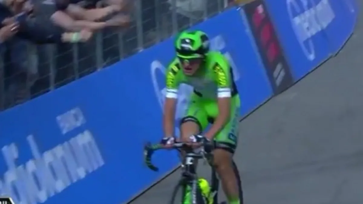 Davanti sono stati Cunego, Ciccone e Pirazzi a dimostrarsi i più forti, mentre in gruppo la Astana ha imposto una netta selezione. Tom Dumoulin si è subito fatto da parte, uscendo definitivamente di classifica, ma anche la maglia rosa Gianluca Brambilla (Etixx) ha accusato delle difficoltà. Il veneto ha scollinato con una trentina di secondi di distacco, riuscendo però a recuperare con una grande discesa. La tecnica picchiata da Pian del Falco ha deciso la corsa, con Giulio Ciccone che si è avvantaggiato approfittando anche di un’involontaria sportellata di Pirazzi a Cunego. Ciccone ha continuato con grande decisione e brillantezza, mentre gli altri fuggitivi si sono spenti, permettendo la risalita a Rovny.