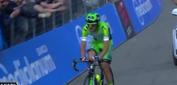 La discesa da Pian del Falco ha ispirato anche un attacco dal gruppo di Amador, il secondo uomo della Movistar. Con grande umiltà e spirito di squadra è stato Brambilla a tenere a bada la fuga del costaricense. Il veneto ha tirato gran parte della salita finale per poi staccarsi e lasciare spazio al compagno Jungels, in odore di rosa. Amador si è visto arrivare il gruppo addosso nel finale con la volata di Valverde che ha causato qualche frazionamento, e Bob Jungels nuova maglia rosa.
