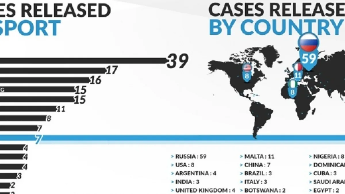 Nella classifica che divide i casi di doping tra le varie nazioni resta allarmante la situazione della Russia, che in cinque mesi ha sommato ben 59 casi. L’Italia occupa l’ottavo posto con tre positività.