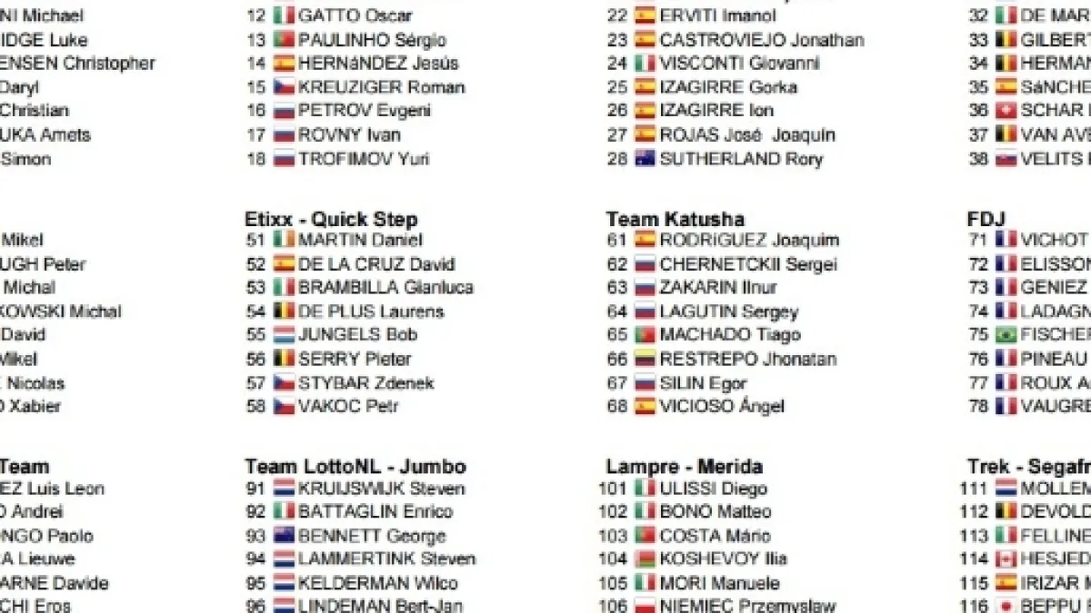 I primi nomi da segnare nell’elenco dei favoriti sono quelli di Alejandro Valverde e Joaquim Rodriguez, ad uno dei loro ultimi duelli visto il ritiro annunciato da Purito per la fine della stagione. Attenzione anche alle rispettive seconde linee, Ion Izagirre e Ilnur Zakarin. Tra i più forti sulla salita finale possiamo aspettare il campione in carica Adam Yates, insieme al gemello Simon, Daniel Martin in casa Etixx, Landa e Nieve per la Sky, ed ancora Mollema e Wellens. Molto forte è anche la BMC presente con tutti i big, Porte, Gilbert, Van Avermaet e Samuel Sanchez. Tornerà a correre Alberto Contador dopo l’infortunio del Tour, ma in casa Tinkoff si aspetta di più un buon Kreuziger. Tra gli italiani possiamo aspettare un bel risultato da Fabio Felline, Diego Ulissi, Davide Formolo e Moreno Moser.