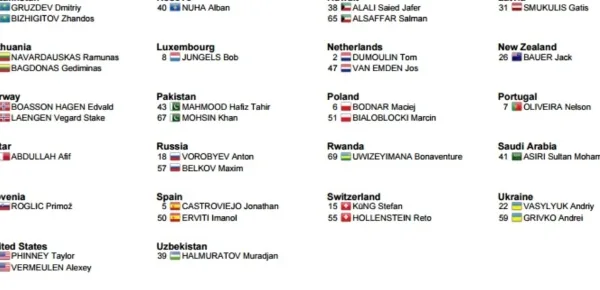 La corsa partirà alle 12.30 quando scatterà il ruandese Uwizeyimana. Intorno alle 13 partiranno i primi atleti di spessore, Sutterlin e Van Emden, mentre Quinziato comincerà la sua crono alle 13.48. L’ultimo a prendere il via sarà il campione in carica Kiryienka alle 14.12, preceduto da Martin, Dennis e Dumoulin.