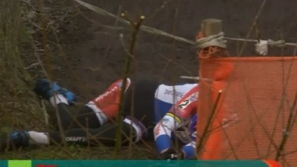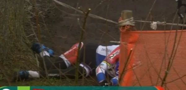 L'olandese ha voluto forzare i tempi cercando di sorpassare subito Meeusen nel suo solito stile aggressivo e spericolato: ha preso d’assalto un dosso, ma scendendo dopo lo scollinamento si è ribaltato finendo per terra rovinosamente.