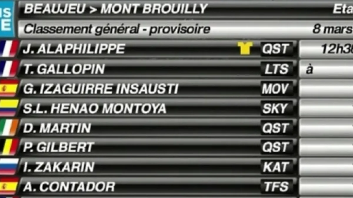Contador è stato forse un po’ prudente nel tratto iniziale in piano, e la bella danza nel finale in salita non è bastata a recuperare su uno scatenato Alaphilippe. Subito dietro allo spagnolo si sono inseriti due nomi a sorpresa, Tony Gallopin e soprattutto Gorka Izagirre, il meno quotato dei due fratelli. Zakarin ha perso 33’’, mentre appena sopra il minuto sono finiti due scalatori come Daniel Martin e Simon Yates. Abbastanza indietro è arrivato Kruijswijk, che conferma di non essere ancora in forma: per l’olandese 1’13’’ di ritardo. Ora in classifica Alaphilippe, forte dei ventagli della prima tappa e di questa eccezionale cronometro, ha dei vantaggi molto cospicui, considerando anche i due inseguitori più vicini che non sono i rivali più accreditati alla vittoria finale. Gallopin è a 33’’, Izagirre a 47’’, ma Henao è già sopra il minuto, con Contador e Zakarin a un minuto e mezzo. Primo italiano è Formolo, 16° a 2’18’’.