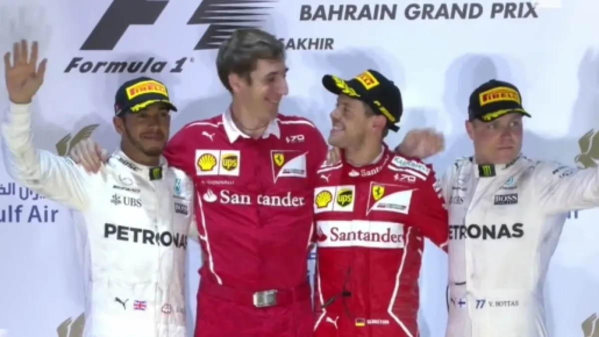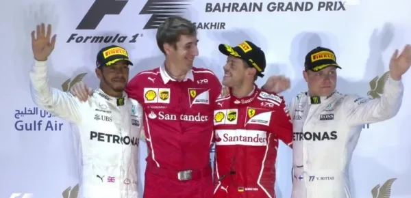 Sebastian Vettel ottiene il secondo successo stagionale nel gran premio del Bahrain a Sakhir. Una Ferrari fortissima che si piazza davanti alla due Mercedes di Hamilton e Bottas che concludono il podio. Non riesce a monetizzare la pole position il finlandese che disputa una gara anonima, terminata al terzo posto. Grave invece l'errore di Lewis Hamilton che al primo pit stop, in regime di safety car, rallenta troppo ed in maniera pericolosa davanti a Ricciardo e questa manovra gli costa 5'' di penalità che risultano determinanti nell'assalto finale dove l'inglese si è portato proprio a 5'' di ritardo da Vettel prima di alzare bandiera bianca negli ultimi giri.