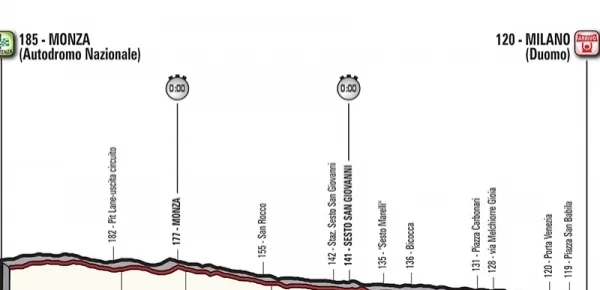 Il 100° Giro d’Italia giungerà alla conclusione nella giornata di domenica 28 maggio 2017, quando si disputerà la 21ª tappa. In programma non ci sarà la consueta passerella finale, bensì una cronometro individuale da Monza a Milano, che potrebbe modificare ulteriormente la classifica della Maglia Rosa. Un percorso di 29,3 Km che potrebbe agevolare i passisti come Tom Dumoulin, specialista nelle gare contro i tempo, visto che ha già fatto sua la Foligno-Montefalco alla 10ª tappa, dopo la cronometro di Apeldoorn che aprì la corsa rosa nell’edizione scorsa.
