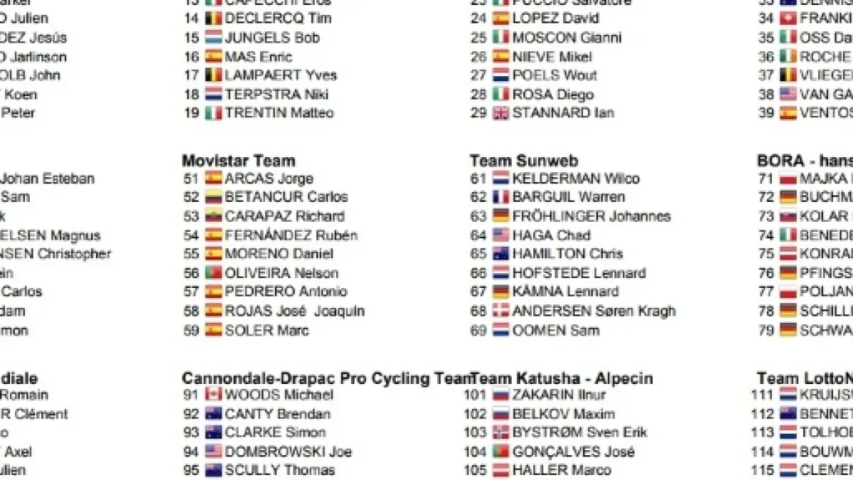 E poi altri grandi specialisti delle corse a tappe come Romain Bardet, al debutto alla Vuelta, ed ancora Pozzovivo, Kruijswijk, Zakarin, Chaves, i gemelli Yates, Majka, Barguil, Meintjes. Per un nome più a sorpresa segnaliamo Sam Oomen.