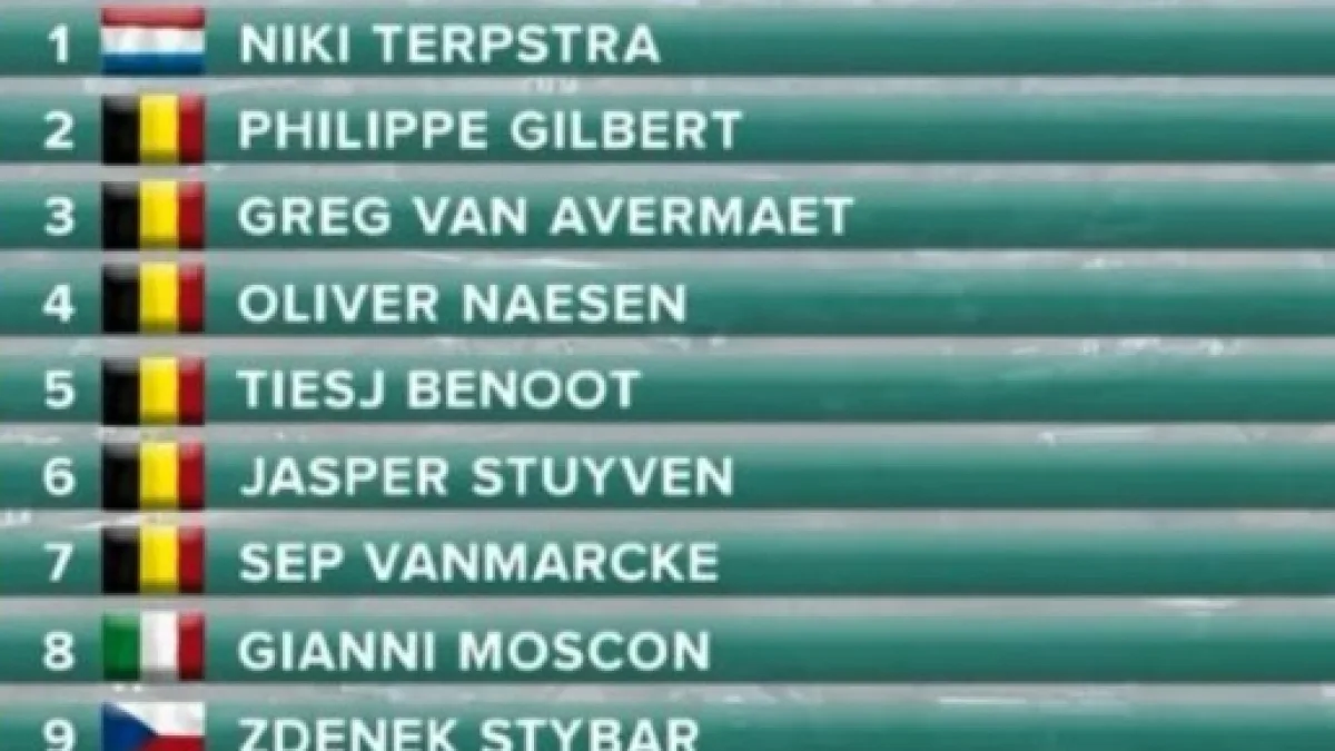 Il gruppetto di Van Avermaet si è riavvicinato ed è sembrato sul punto di poterlo raggiungere, ma nel finale la collaborazione è venuta meno e una lunga sequenza di scatti e rallentamenti ha favorito di nuovo la fuga di Terpstra, sempre protetto da Gilbert e Stybar. La Quickstep ha così confezionato il finale perfetto, con la vittoria solitaria di Terpstra e con Gilbert che ha anticipato gli altri per la seconda piazza. Terzo è stato Van Avermaet davanti a Naesen, rimasto sempre passivo, e Benoot, invece in grande spolvero anche oggi.
