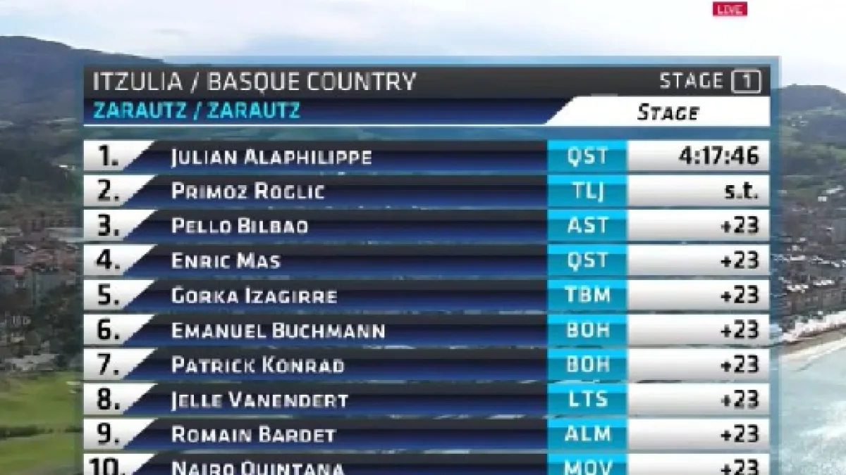 Roglic e Alaphilippe hanno volato gli ultimi chilometri di discesa senza incertezze e allo sprint il corridore della Quickstep ha fatto valere il suo spunto per vincere la tappa. Roglic ha comunque impressionato molto in salita e pensando alla cronometro dei prossimi giorni ha messo un tassello importante in prospettiva classifica generale. Il gruppetto con Quintana, Landa, Bardet e Uran è arrivato a 23’’, mentre Vincenzo Nibali ha concluso in un secondo gruppo attardato di 51’’.