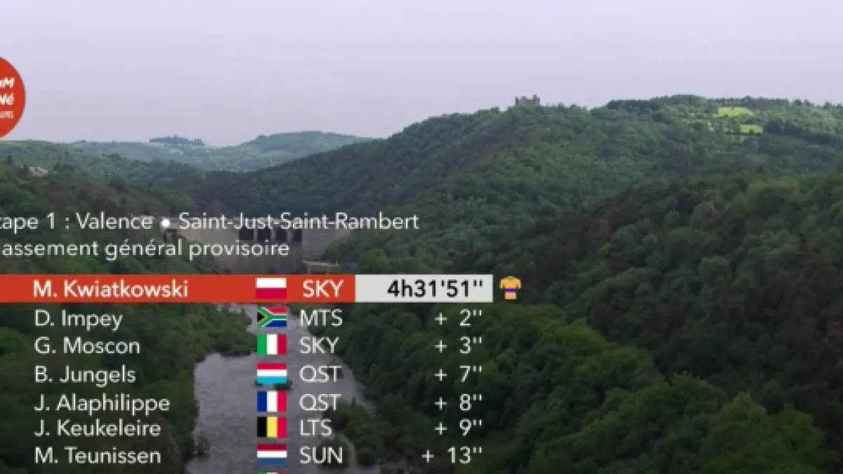 Il finale è stato concitato e intenso. Sulla breve salita di Barrage de Grangent ha provato prima Dylan Teuns (BMC) e poi soprattutto Julian Alaphilippe (Quickstep) con una stoccata decisa. Kwiatkowski e Thomas (Team Sky) hanno reagito prontamente e le pendenze limitate non hanno consentito una grande selezione.