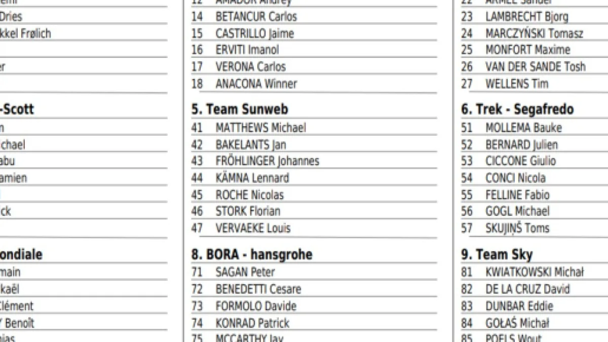 Alejandro Valverde è il signore di questa corsa, avendola vinta cinque volte, ed è atteso nella sfida finale nonostante l’opaca prova di due giorni fa in Olanda. Il più pericoloso per Alaphilippe sembra però Adam Yates, il britannico che quest’anno sta compiendo il definitivo salto di qualità ed è tagliato apposta per queste salite brevi e durissime. Chance importanti ci sono anche per Michal Kwiatkowski, Daniel Martin e Jakob Fuglsang, mentre sono attesi più con un ruolo da piazzato sicuro i vari Mollema, Matthews, Bardet, Kreuziger. Da valutare è Tim Wellens, ritirato domenica all’Amstel ma sempre protagonista, anche con attacchi da media distanza, nelle passate edizioni della Freccia. Ci sarà anche Sagan, ma il finale di corsa e la sua condizione non lasciano ben sperare.
