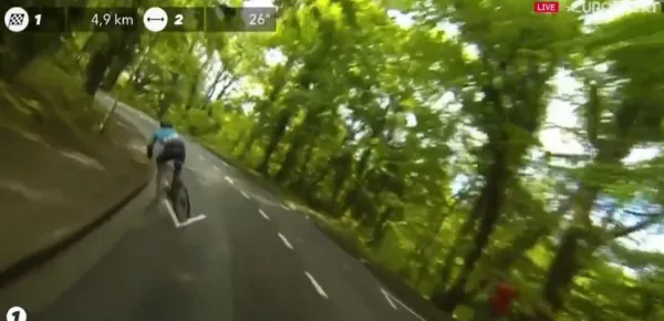 In quest'azione si sono inseriti anche Caruso (Team Bahrain) e De Marchi (CCC), ma la Deceuninck ha ripreso in mano le operazioni riuscendo a non fargli prendere un vantaggio importante.