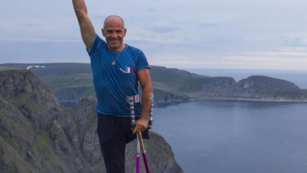 42 tappe percorse in 56 giorni, con l'ausilio delle inseparabili stampelle in carbonio Katana, da lui ideate.