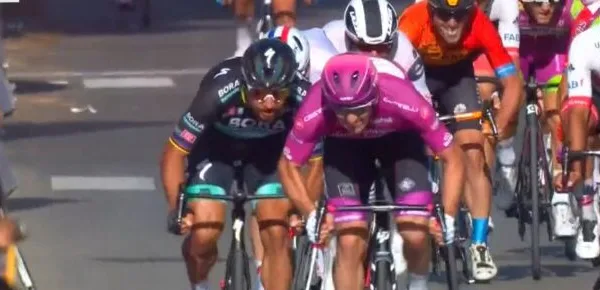 Il campione della Bora si è un po’ lamentato appena dopo l’arrivo alludendo allo spostamento di Demare, che ha iniziato la sua volata sulla sinistra della strada per poi procedere in diagonale, una mossa che la giuria non ha però sanzionato.