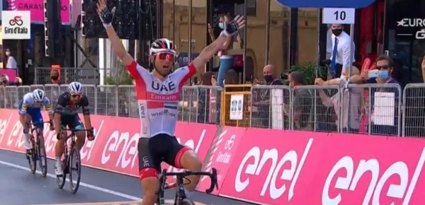 È stato grande spettacolo nel finale della seconda tappa del Giro d’Italia, sull’arrivo in salita di Agrigento che ha chiamato subito allo scoperto alcuni grandi nomi della corsa. La UAE ha reso molto impegnativi l’ultima parte della salita finale lanciando al successo Diego Ulissi. Il livornese è scattato una prima volta insieme ad Honore per poi vedersi raggiungere da Peter Sagan, che però ha speso tutte le sue energie in questa rimonta e non è riuscito a contendere il successo ad Ulissi.